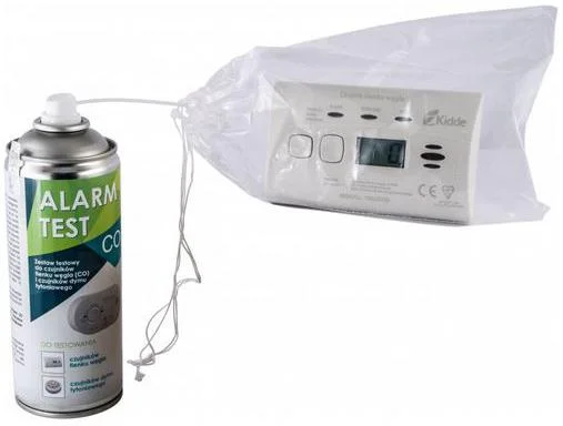 Zestaw przeznaczony do testowania czujników tlenku węgla i czujników dymu tytoniowego. W jego skład wchodzą puszka gazu testowego, rurka kapilarna oraz woreczek strunowy.
