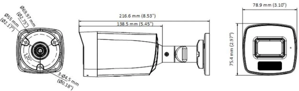 | Szybkość klatek | TVI: 3K@20 fps, 4 MP@25 fps/30 fps, 1080p@25 fps/30 fps |
