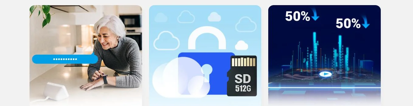 - Dwie opcje magazynowania danych: bezpiecznie przechowuj ważne chwile i miłe wspomnienia na pojemnej karcie pamięci (UWAGA – kartę należy zakupić we własnym zakresie!) bądź w chmurze EZVIZ CloudPlay.