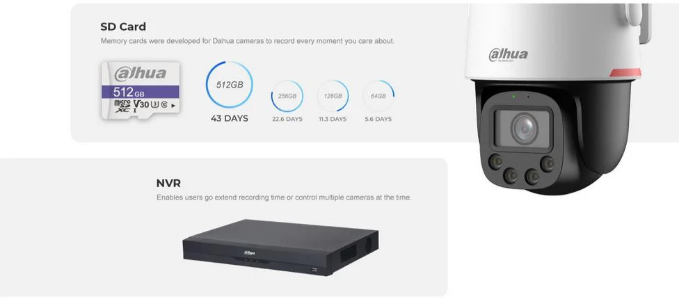 Nagrania wideo można łatwo zapisywać i odtwarzać za pomocą karty SD lub rejestratora NVR.