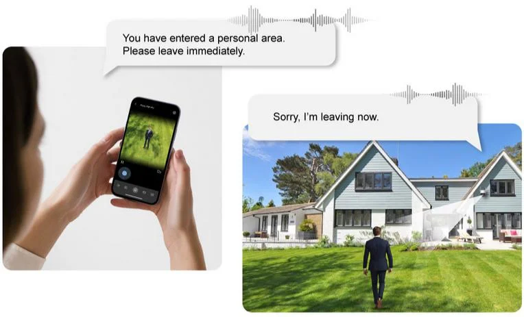 Ludzie i pojazdy są precyzyjnie wykrywani w strefie monitoringu przy jednoczesnym ograniczeniu fałszywych alarmów. W przypadku wtargnięcia kamera uruchamia alarm dźwiękowy i świetlny oraz natychmiast przesyła kluczowe informacje do aplikacji DMSS, dzięki czemu pozostajesz na bieżąco – niezależnie od tego, gdzie jesteś.