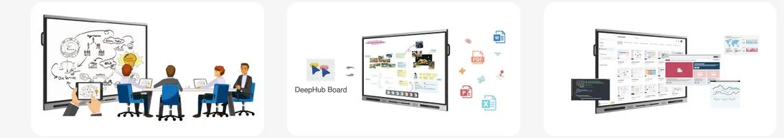 Dzięki DeepHub Board lokalizacja przestaje być przeszkodą dla seminariów i spotkań. Różne zespoły mogą jednocześnie obsługiwać ekran. Umożliwia to burzę mózgów, kreatywność, oryginalność, inicjatywę.