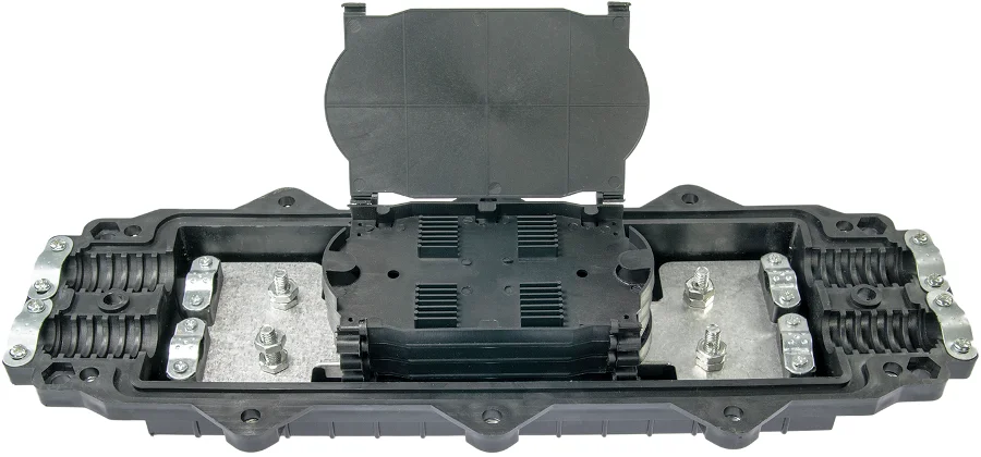 Mufa jest stosowana do ochrony splotu kabli światłowodowych oraz aplikacji rozgałęziających.