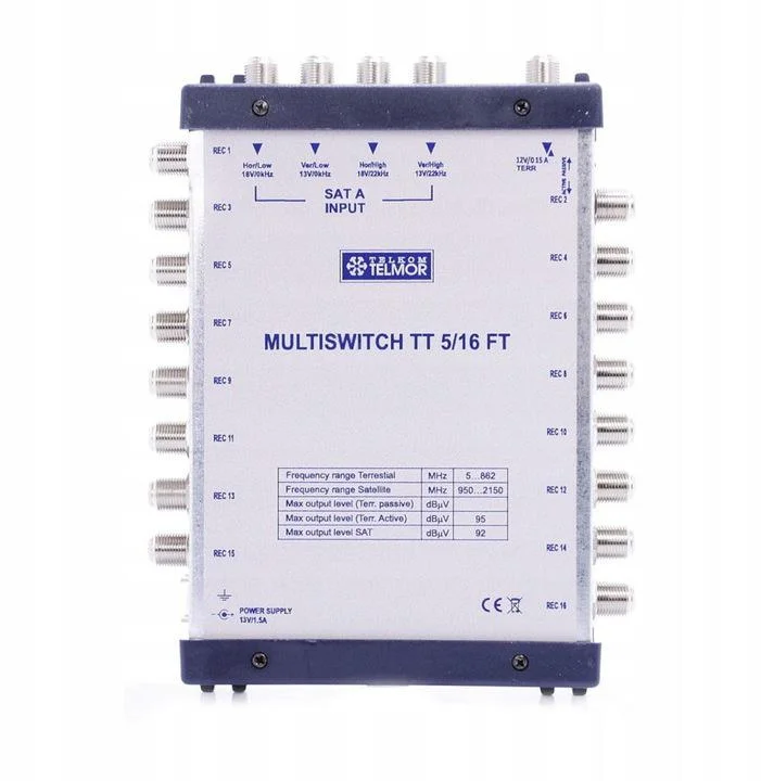 TT-5/16FT należy do rodziny multiswitchy pozwalającej budować duże i bardzo duże instalacje zbiorowe. Nowe rozporządzenie Ministra Transportu, Budownictwa i Gospodarki Morskiej dot. Warunków technicznych, jakim powinny odpowiadać budynki nakłada obowiązek budowania instalacji multiswitchowych w każdym nowym budynku wielorodzinnym. Niewątpliwą zaletą multiswitchy TT-5/16FT jest wbudowana prekorekcja charakterystyki – nachylenie charakterystyki. Ta cecha urządzenia w połączeniu ze zjawiskiem wzrostu tłumienia kabla wraz ze wzrostem częstotliwości, pozwala uzyskać wyrównanie poziomów sygnałów na gniazdku abonenckim.