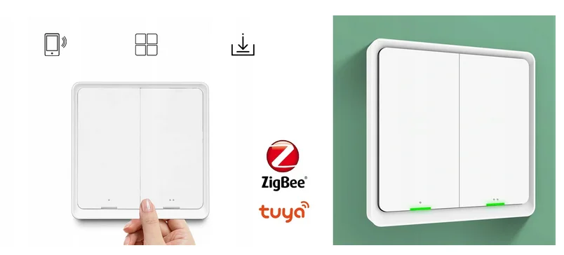 Bezprzewodowy natynkowy przycisk / pilot do realizacji scen ustawionych w aplikacji TUYA – Przycisk z 2 klawiszami – 6 możliwych SCEN – obsługa przez protokół ZigBee