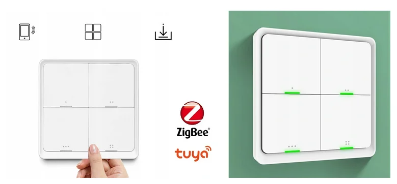 | Krótki opis | Bezprzewodowy natynkowy przycisk / pilot do realizacji scen ustawionych w aplikacji TUYA – Przycisk z 4 klawiszami – 12 możliwych SCEN – obsługa przez protokół ZigBee |