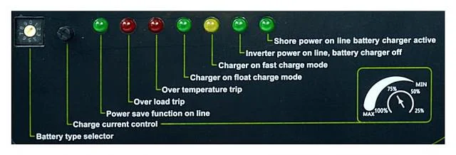 Potężna ładowarka w urządzeniach serii POWER SINUS wytwarza prąd ładowania do 120 A (w zależności od modelu), a wykorzystanie wbudowanej korekcji współczynnika mocy ładowania, sprawia, że urządzenie używa 20 – 30 % mniej energii z wejścia AC, niż w przypadku standardowej ładowarki.