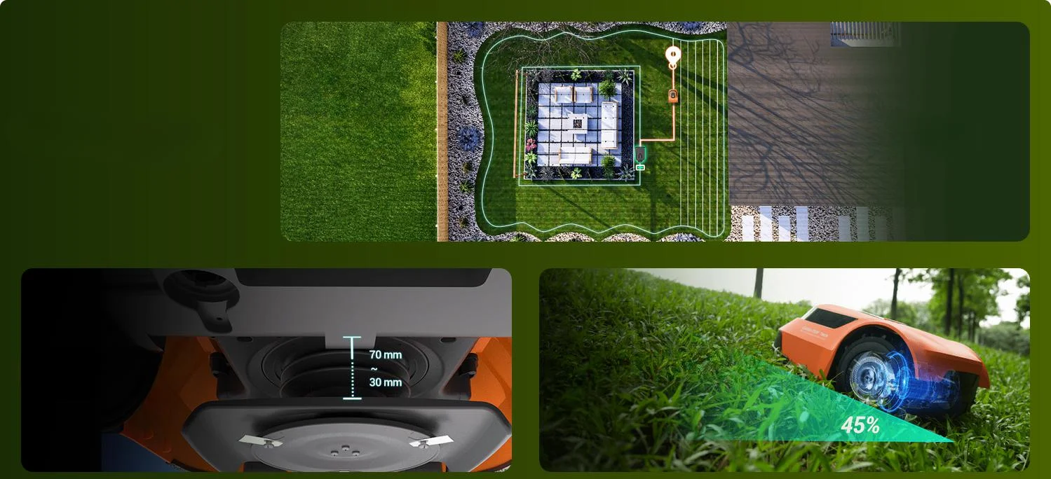 Nie musisz ręcznie przemieszczać RM600 z miejsca na miejsce na żadnym etapie koszenia. Robot szybko tworzy mapę ogrodu, sprawnie planuje trasę koszenia i inteligentnie zapamiętuje etap pracy.