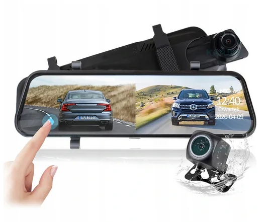 - Kamera cofania / wideorejestrator trasy w lusterku z dotykowym wyświetlaczem 10″!