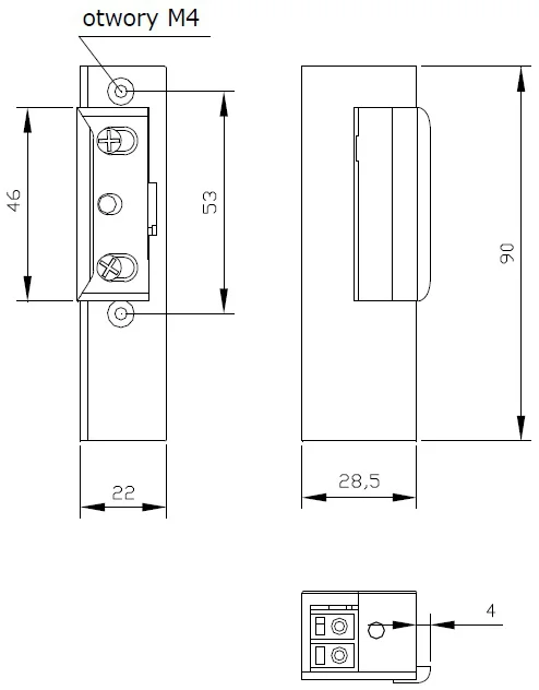 - Wymiary zewnętrzne obudowy: 22 x 28 x 90 mm