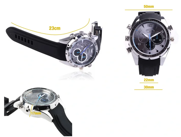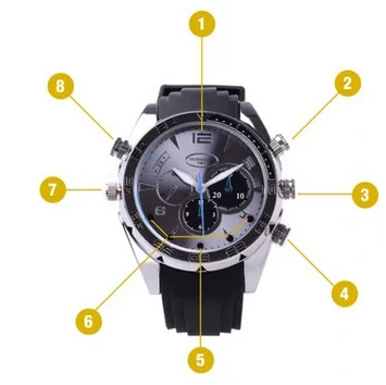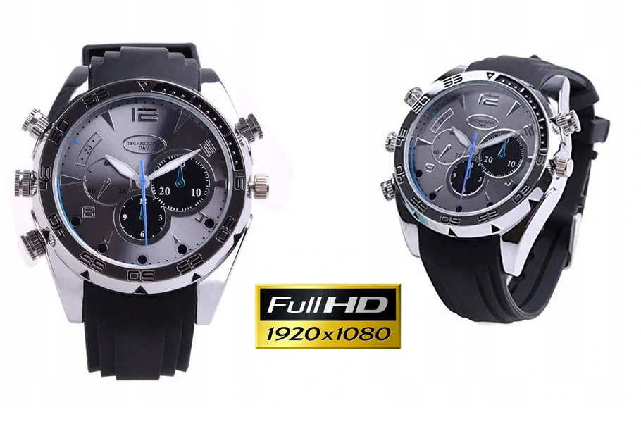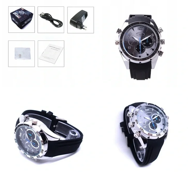 - Miniaturowa kamera szpiegowska ukryta w zegarku naręcznym, nagrywające w jakości FULL HD po interpolacji– mała i dyskretna kamera do rejestracji zdarzeń z ukrycia.